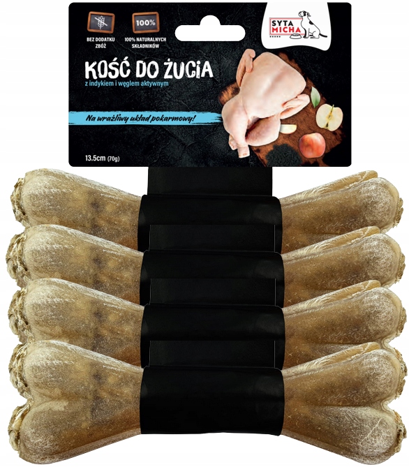 Rozmiar kości (13,5 cm) jest uniwersalny, dzięki temu pies każdego gabarytu będzie mógł czerpać radość z gryzienia funkcyjnych kości od Sytej Michy.