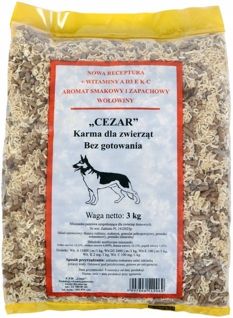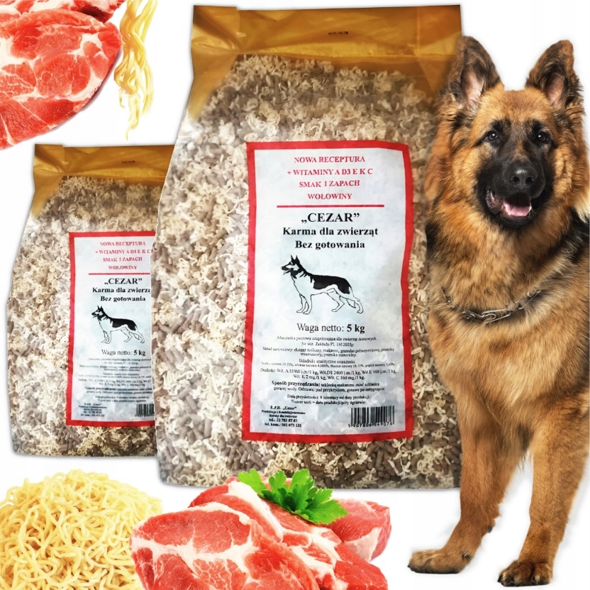 Strona główna » Sklep » Cezar Makaron dla Psa Błyskawiczny Bez Gotowania z Mięsem Wołowym 5kg