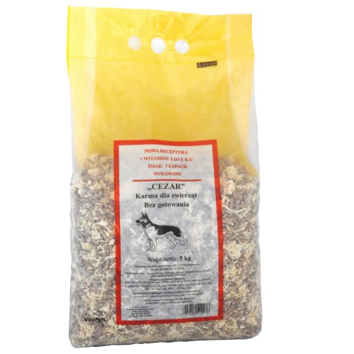 Cezar Makaron dla Psa Błyskawiczny Bez Gotowania z Mięsem Wołowym 5kg