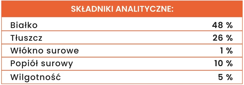 Wołowina – jest bogatym źródłem dobrze przyswajalnego żelaza i witamin – zwłaszcza z grupy A, B i E. Zawiera ponadto cenną kreatynę i L-karnitynę. Kreatyna zwiększa możliwości wysiłkowe, a L-karnityna przyczynia się do poprawy metabolizmu i tempa regeneracji Twojego psa.