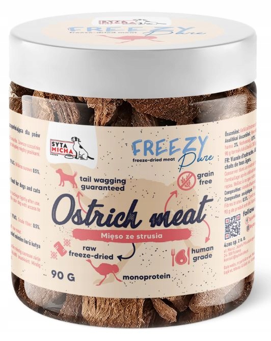 Strona główna » Sklep » Syta Micha. 100% liofilizowane mięso strusia dla psa 90g FREEZY Pure
