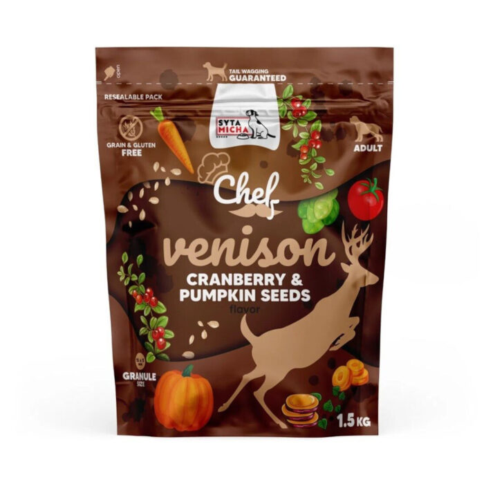 Strona główna » Sklep » Syta Micha Chef. Sucha karma dla psa Dziczyzna, żurawina i pestki dyni 1.5kg